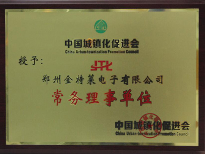 中國城鎮(zhèn)化促進(jìn)會授予鄭州金特萊電子有限公司:常務(wù)理事單位證書